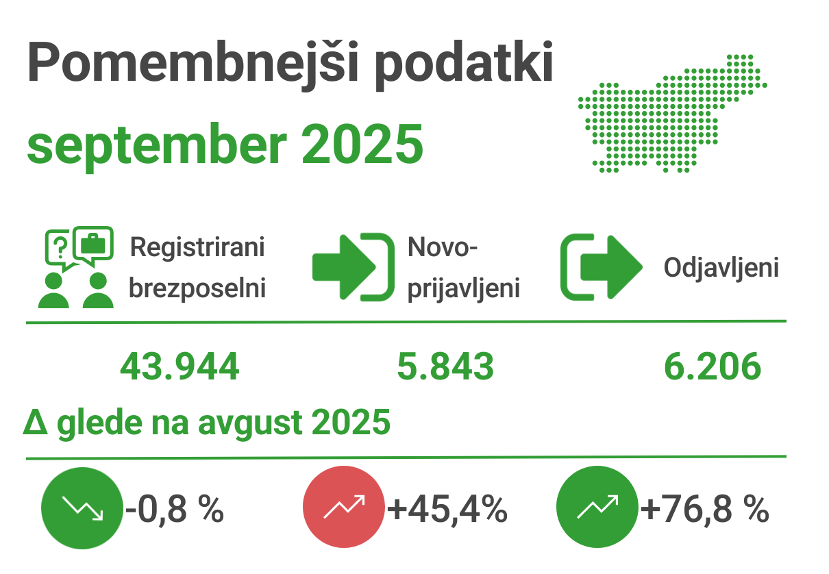 ► Poglejte podrobnejše podatke: Sporočilo o trgu dela za september 2025.