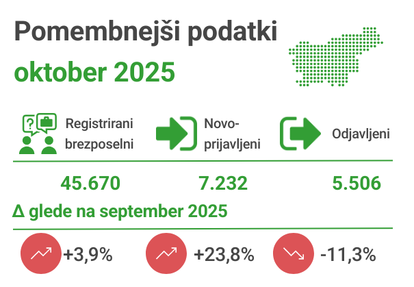 ► Poglejte podrobnejše podatke: Sporočilo o trgu dela za oktober 2025.