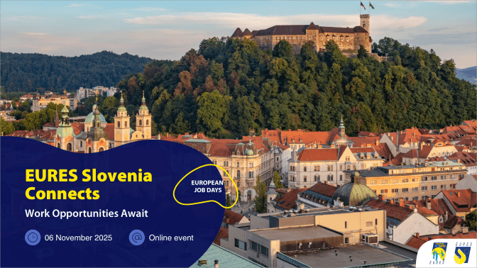 - Pridružite se nam 6. 11. 2025 v živo med 11.00 in 14.00 na spletni platformi Evropskih zaposlitvenih dni EURES Slovenia Connects in odkrijte svojo naslednjo karierno priložnost!