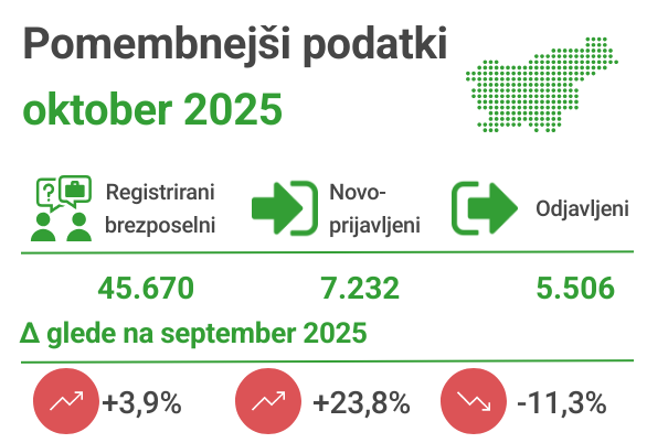 Prikazujemo pomembnejše statistične podatke na nacionalni ravni, po območnih službah Zavoda, po statističnih regijah in po občinah.